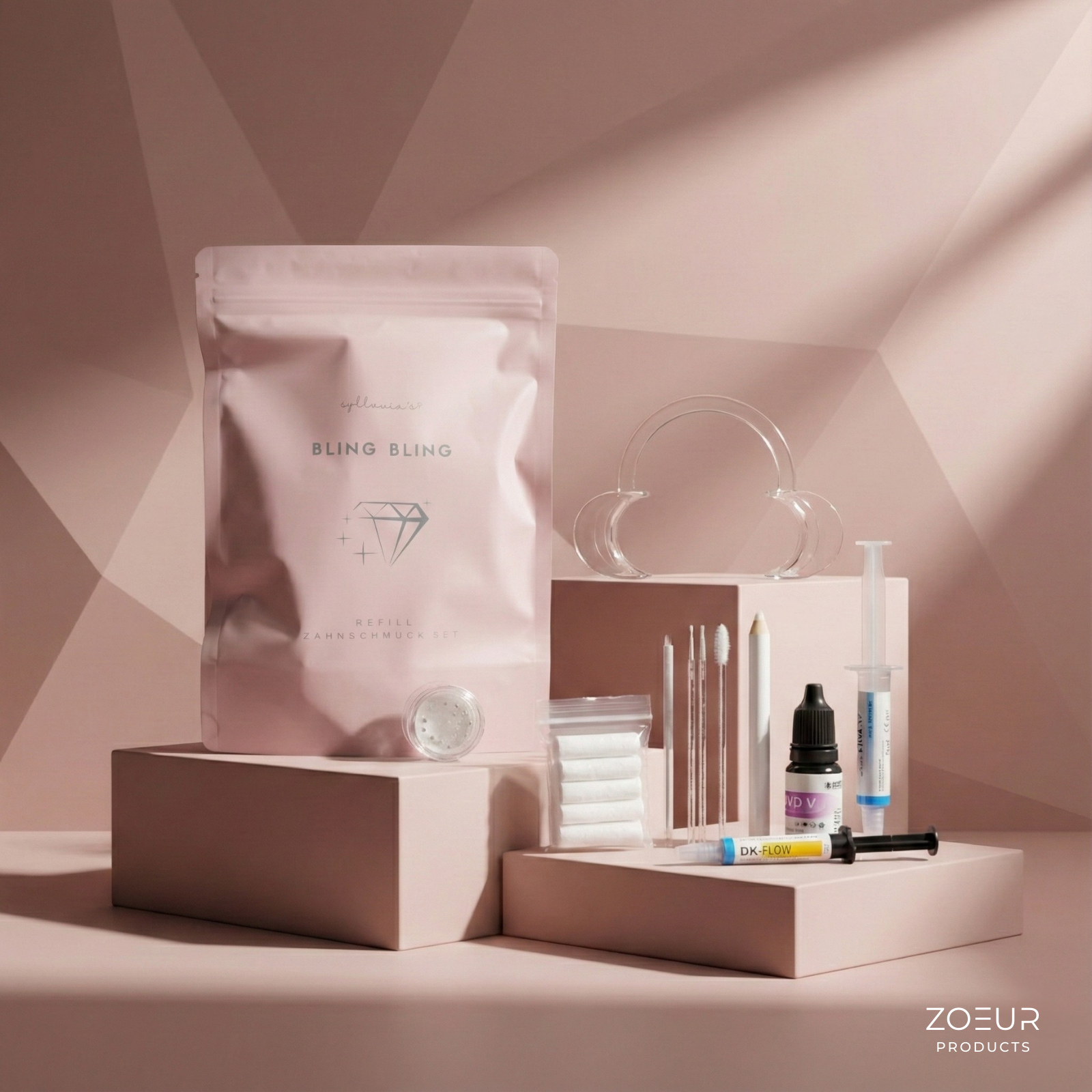 Kompaktes Nachfüll-Set für professionelle Zahnschmuck-Behandlungen - ideal für Studios, die Verbrauchsmaterial schnell und ohne unnötiges Zubehör nachkaufen möchten.