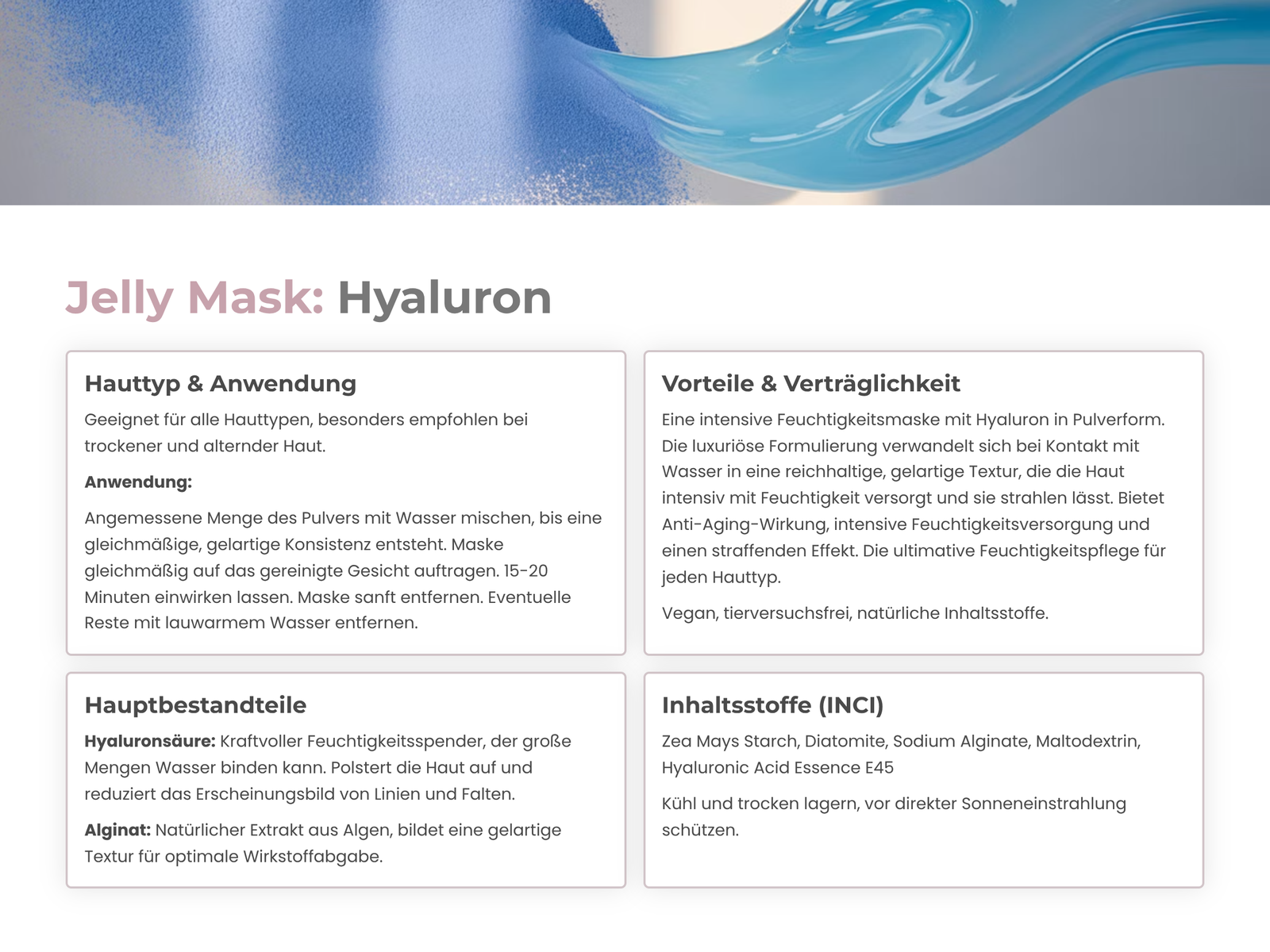 • Pulverform verwandelt sich in reichhaltige Gel-Textur