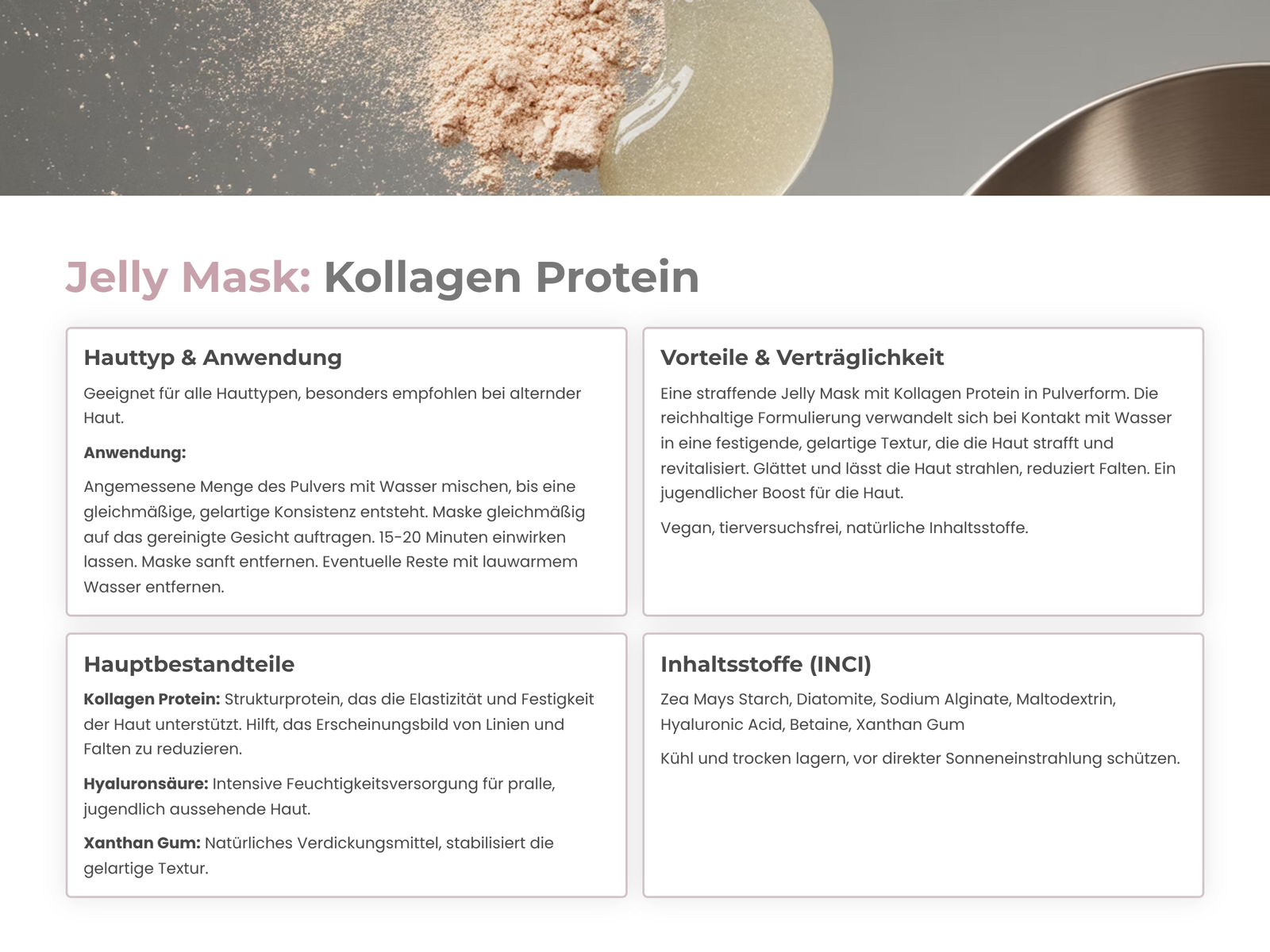 • Pulverform verwandelt sich in festigende Gel-Textur